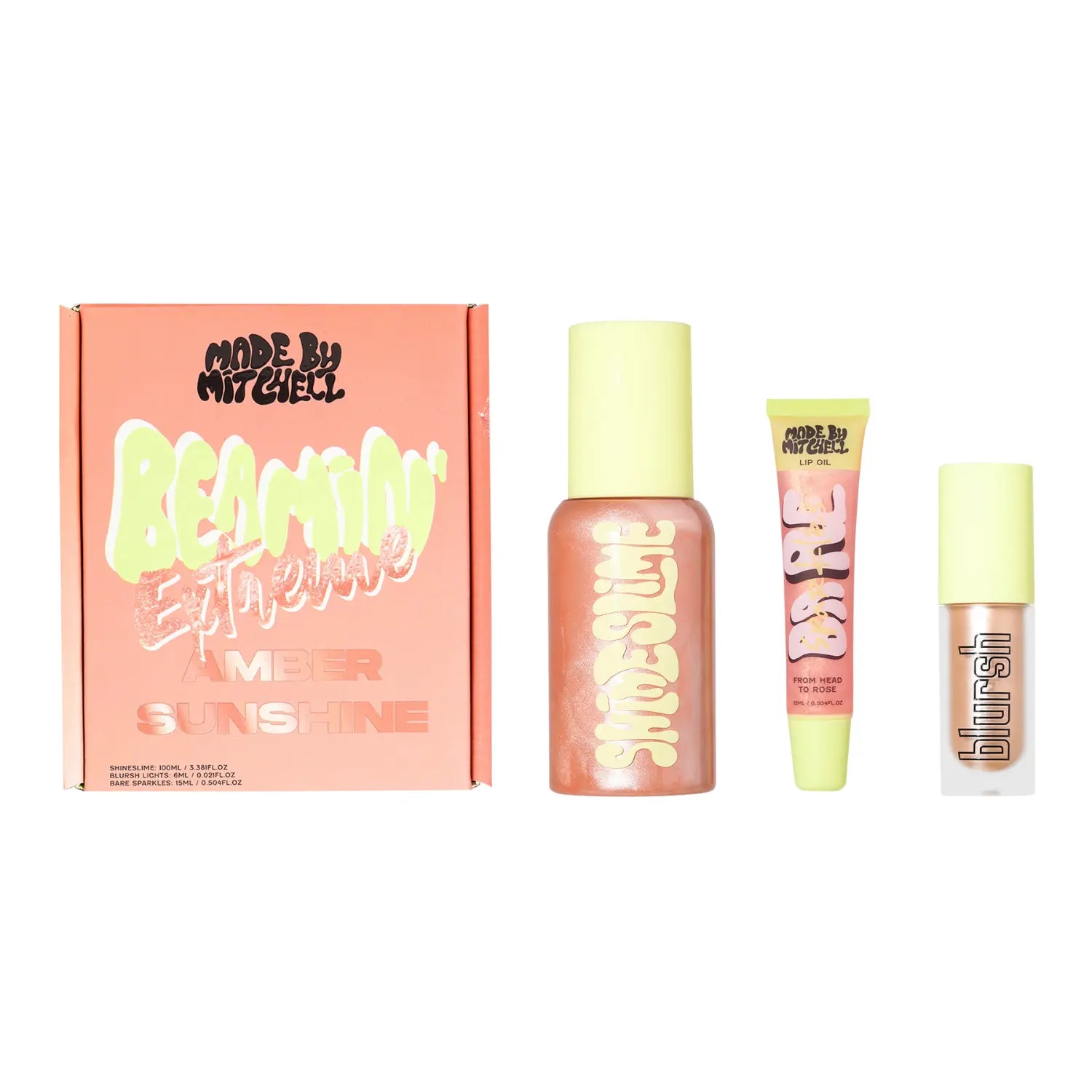 Das Made By Mitchell Beamin Extreme Amber Sunshine Bundle ist alles, was du brauchst, um dich von Kopf bis Fuß in Glow zu hüllen. Dieses traumhafte Trio ist vollgepackt mit Glanz, Glitzer und Shine und glaub uns: damit wirst du garantiert zum Hingucker. Ob du nun einen dezenten Sparkle willst oder auf Full-On-Glitter setzt: dieses Set lässt dich auf deine eigene Art strahlen. Das Beauty-Bundle ist in mehreren Farben erhältlich, sodass du genau das auswählen kannst, was zu dir passt!