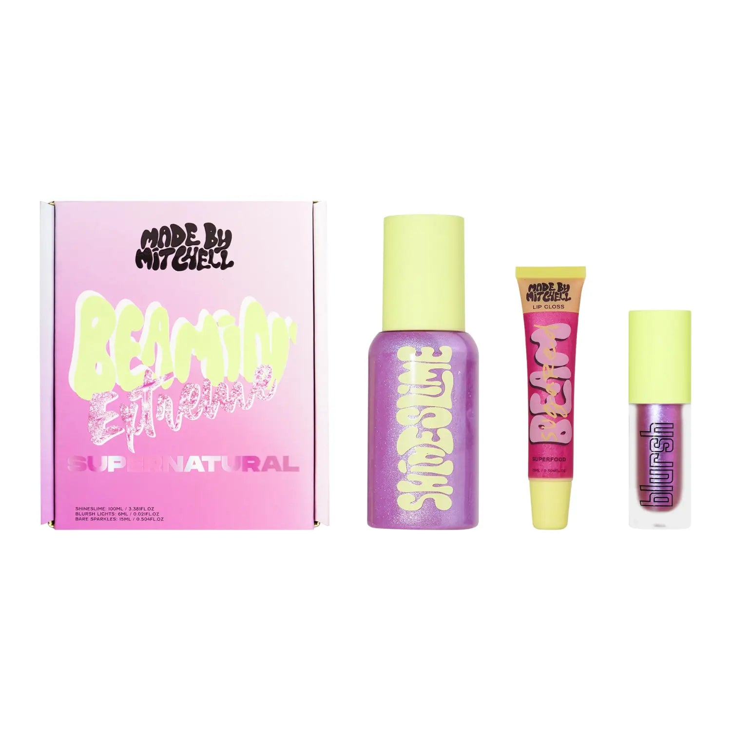 Das Made By Mitchell Beamin Extreme Supernatural Bundle ist alles, was du brauchst, um dich von Kopf bis Fuß in Glow zu hüllen. Dieses traumhafte Trio ist vollgepackt mit Glanz, Glitzer und Shine und glaub uns: damit wirst du garantiert zum Hingucker. Ob du nun einen dezenten Sparkle willst oder auf Full-On-Glitter setzt: dieses Set lässt dich auf deine eigene Art strahlen. Das Beauty-Bundle ist in mehreren Farben erhältlich, sodass du genau das auswählen kannst, was zu dir passt!
