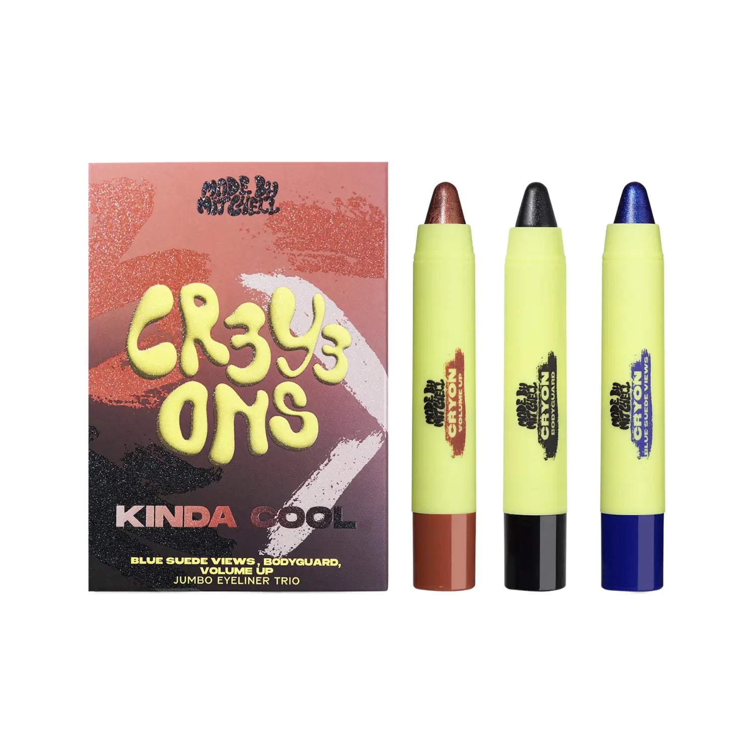 Das Made By Mitchell Cryon Trio Kinda Cool ist eine kraftvolle Mischung aus kühlen Tönen und intensiven Pigmenten: perfekt für alle, die gewagte, definierte Augen-Looks mit einem metallischen Twist lieben. Dieses Trio enthält drei cremige, leicht verblendbare Jumbo-Eyeliner, die du als Eyeliner, Lidschatten oder smudgy Akzent verwenden kannst. Subtil oder Statement? Alles ist möglich.