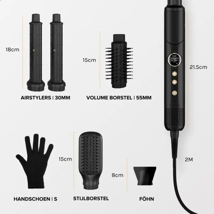 Der MAE Airstyler Pro II ist dein luxuriöser Styling-Partner für jeden Tag: ganz ohne Luxuspreis. Ob du luftige Locken, ein glattes Blow-out oder eine Extraportion Volumen willst: dieser All-in-One-Styler macht es super einfach, ohne dein Haar zu schädigen. Dank des Coandă-Effekts wird dein Haar automatisch um den Aufsatz gewickelt: für müheloses Styling mit minimaler Hitze und maximalem Glanz.