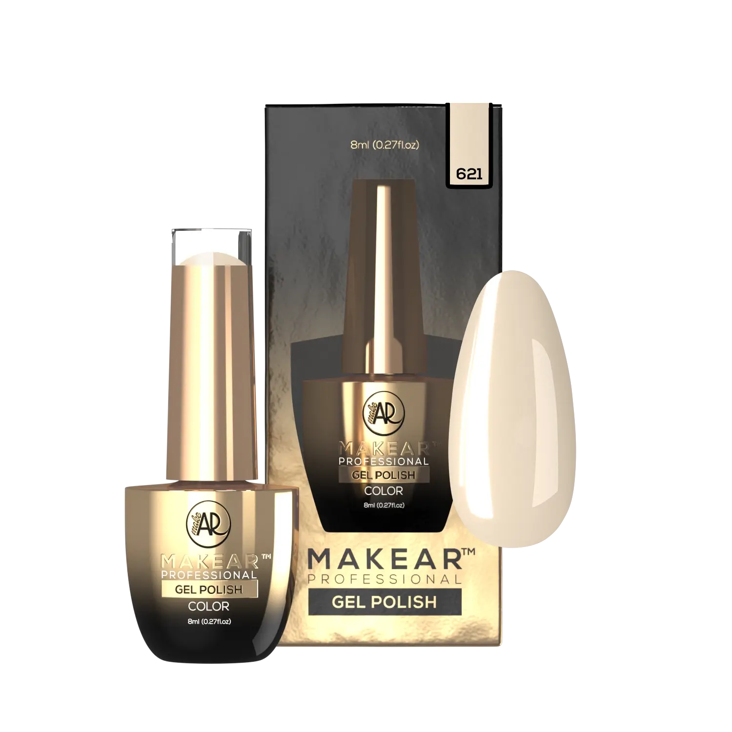 Der Makear UV Gel Polish 621 Honeymoon ist dein Go to, wenn du nach einem Gel Polish suchst, der lange hält, intensiv glänzt und superleicht aufzutragen ist. Dank der cremigen Textur und der hohen Pigmentierung arbeitest du schnell und präzise ohne Aufwand. Der perfekt geformte Pinsel sorgt dafür, dass du selbst die kleinsten Ecken sauber erreichst.