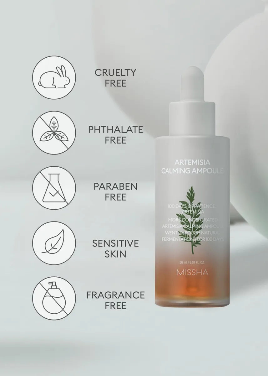 Das Missha Artemisia Calming Ampoule ist ein Must-have für alle, die unter empfindlicher, gereizter oder aus dem Gleichgewicht geratener Haut leiden. Dieser koreanische Bestseller enthält eine hochwirksame Dosis doppelt fermentierten Artemisia-Annua-Extrakts (auch bekannt als Beifuß), sorgfältig angebaut auf der Insel Ganghwa: berühmt für ihre reine Natur und nährstoffreiche Erde.