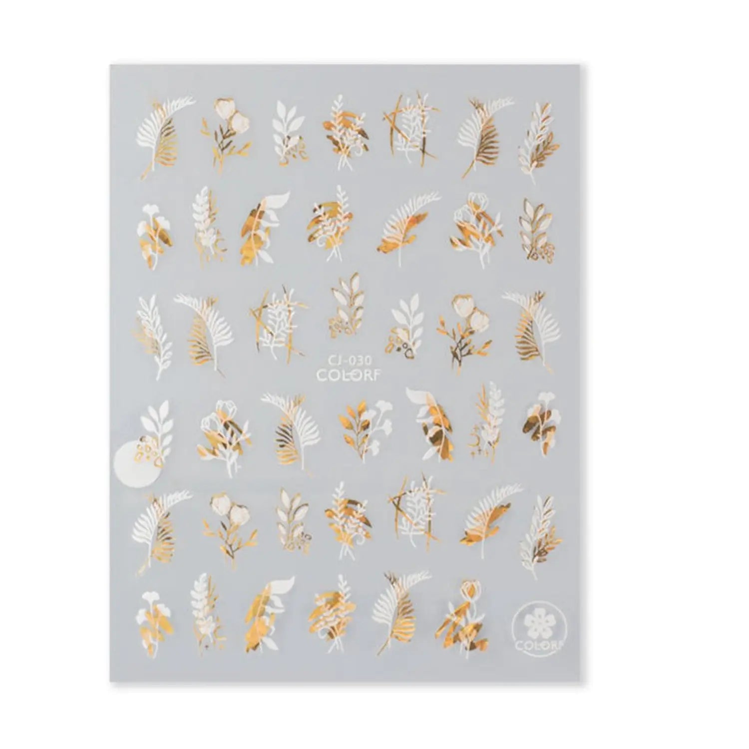 Die Modena Nails Nail Art Gold Glam Stickers 09 verleihen deiner Maniküre in wenigen Sekunden ein glamouröses Upgrade: einfach, schnell und super stilvoll. Diese filigranen Sticker kombinieren trendige florale und lineare Designs mit einem glänzenden Gold-Finish. Erhältlich in Weiß und Schwarz, immer verziert mit goldenen Details, für einen sofort luxuriösen Look.