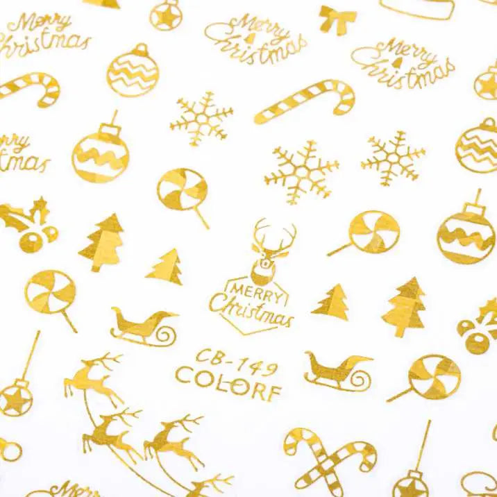 Die MollyLac Nail Stickers X-mas Gold verleihen deiner Maniküre ein stilvolles und festliches Upgrade. Dieses goldene Weihnachtsdesign mit Weihnachtsmützen, Candy Canes, Rentieren, Weihnachtskugeln, einem Schlitten und mehr passt perfekt zu klassischen und modernen Nagellooks. Ideal um deinen Nägeln während der Feiertage eine subtile aber festliche Note zu verleihen.
