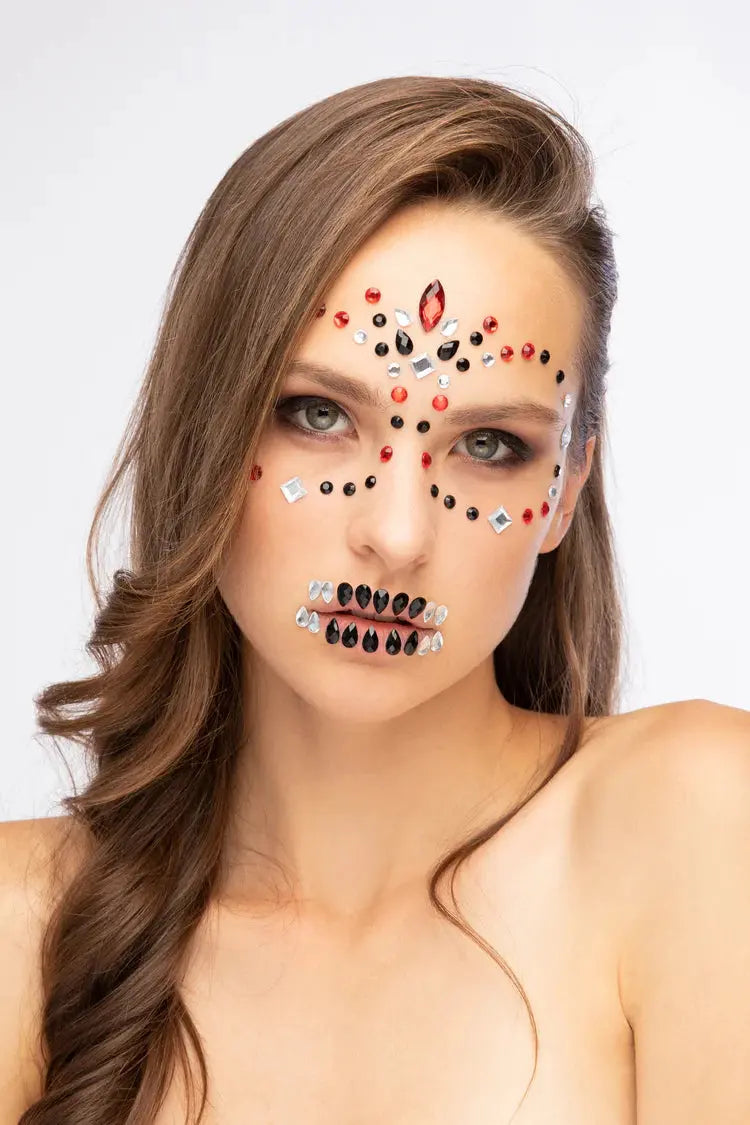 Lass deiner Kreativität freien Lauf mit diesen funkelnden Steinen – egal ob spooky chic, geheimnisvoll oder voll glamourös. Ideal in Kombination mit Face Paint, Glitzer oder anderen SFX-Make-up-Produkten.