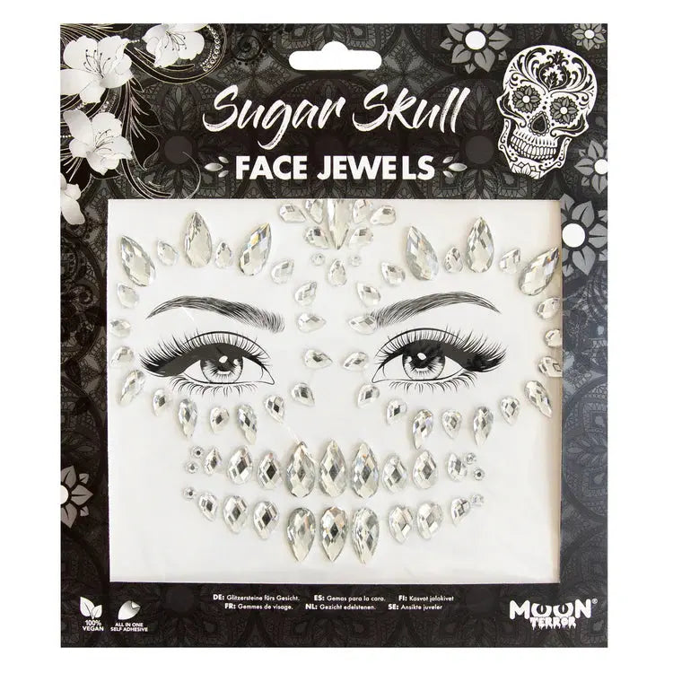 Die Moon Creations Moon Terror Halloween Face Jewels Sugar Skull sind das perfekte Finish für deinen spooky Glam-Look. Mit diesen selbstklebenden Face Jewels kreierst du im Handumdrehen einen magischen Look, der garantiert alle Blicke auf sich zieht, egal ob auf einer Halloweenparty, einem Festival oder bei einem Fotoshooting.