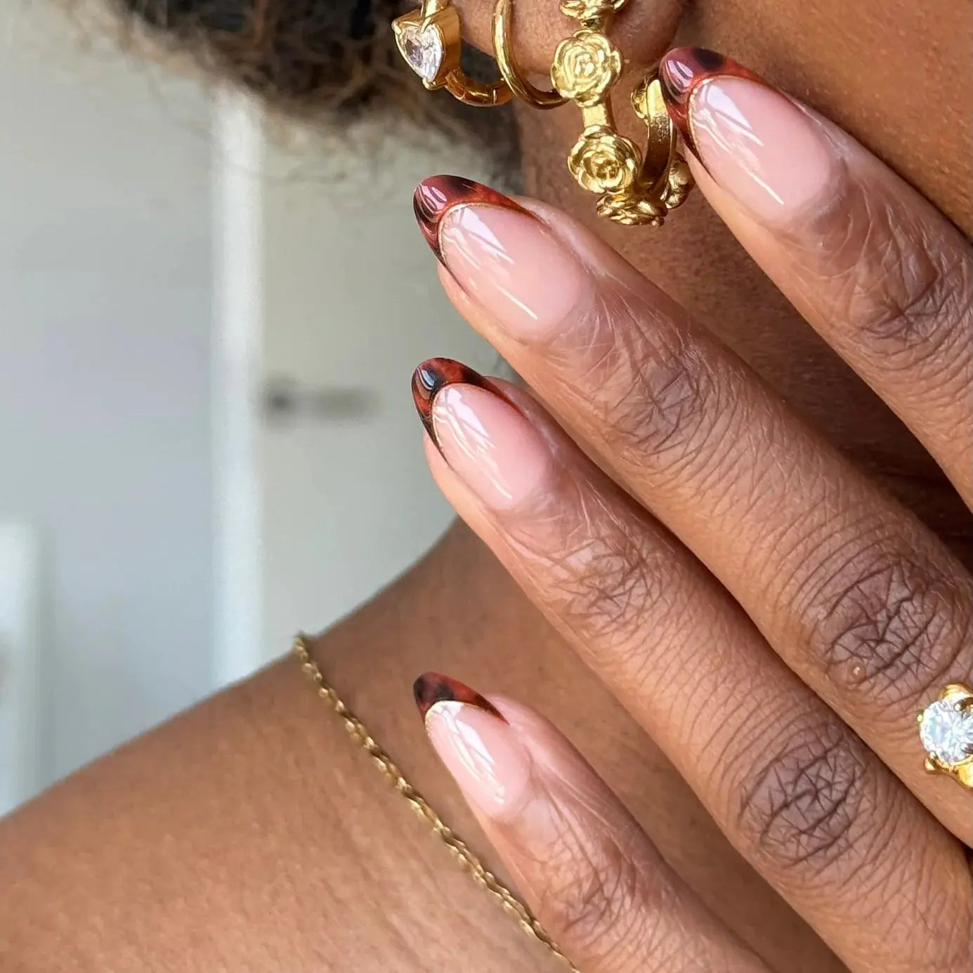 - Klebe-Tabs: Schutzfolie entfernen und Tab auf dem Naturnagel platzieren.
