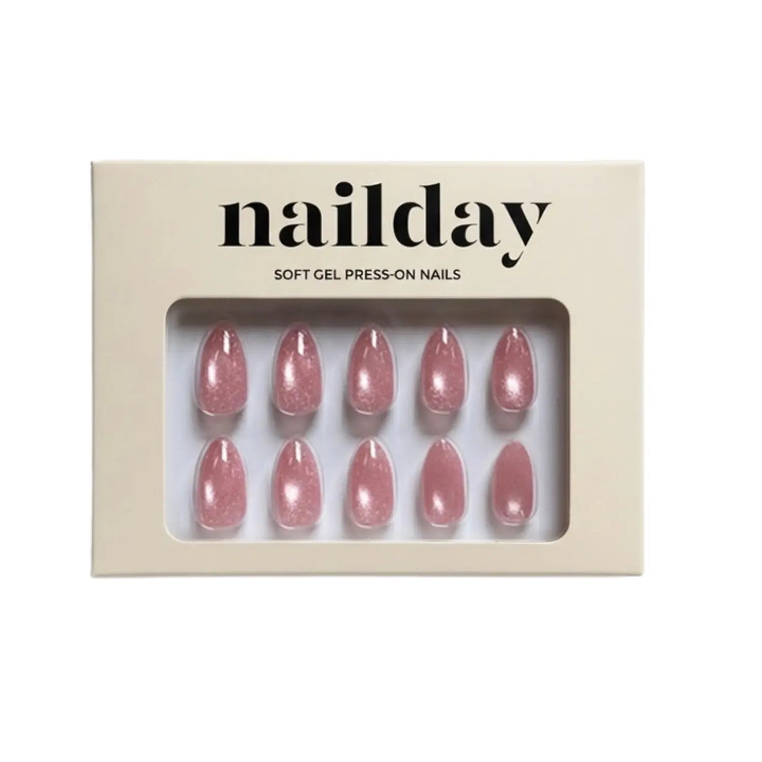 Die Nailday Soft Gel Press-On Nails Rose Quartz ist pure Magie auf deinen Nägeln. Dieser sanfte rosafarbene Cat Eye-Ton ist mit dezentem Glitzer veredelt, der bei jeder Bewegung funkelt. Elegant, traumhaft und anders als eine klassische rosa Maniküre.