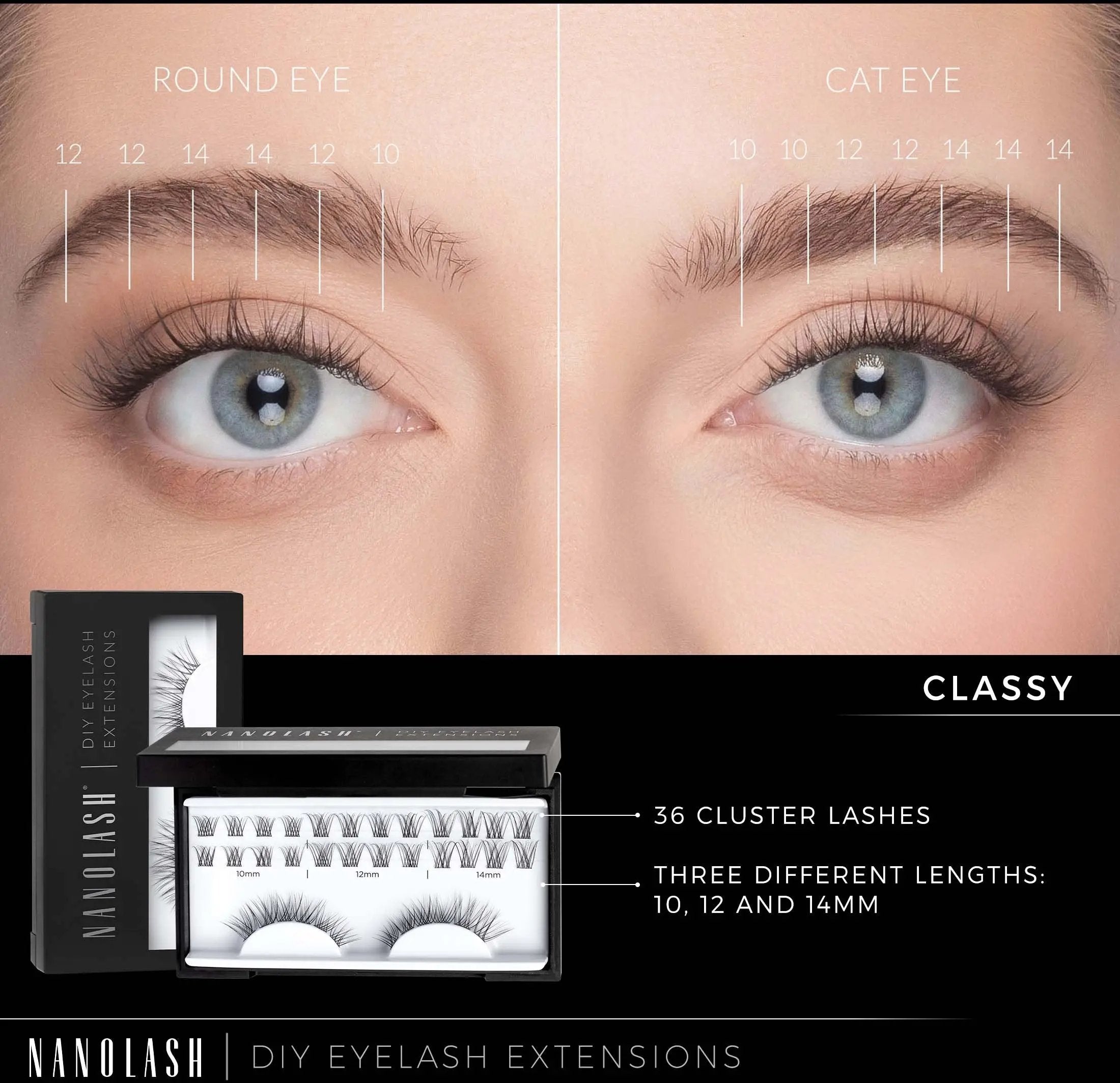 Die Nanolash DIY Eyelash Extensions Classy sind perfekt für alle, die einen eleganten, raffinierten Wimpernlook mit einem Hauch Extra-Flair lieben. Diese stilvollen Wimpern liefern dir in nur 10 Minuten das Ergebnis einer professionellen Salonbehandlung: direkt aus deinem eigenen Badezimmer. Classy wurde entwickelt, um deine natürliche Schönheit mit dezentem Volumen, perfekter Länge und einem sanft gelifteten Look zu unterstreichen. Ideal für den Alltag und für besondere Anlässe wie Dinner-Dates, Business-Meetings oder Hochzeiten, bei denen du einfach makellos aussehen möchtest.