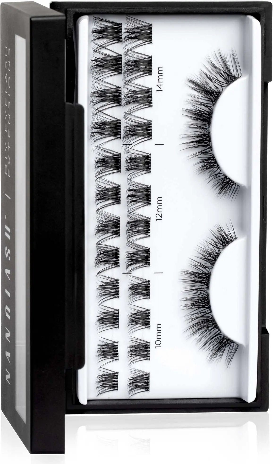 Die Nanolash DIY Eyelash Extensions Harmony sind dein Shortcut zu salonreifen Wimpern: ganz bequem von zu Hause aus, in nur 10 Minuten! Diese wunderschönen Clusterwimpern sind perfekt für alle, die einen weichen, natürlichen Look mit einem Hauch von Extra-Flair lieben. In jeder Box findest du 36 ultraleichte Cluster in verschiedenen Längen, sodass du frei entscheiden kannst, ob du einen dezenten Alltagslook oder ein etwas dramatischeres Finish möchtest. Du bestimmst den Vibe!