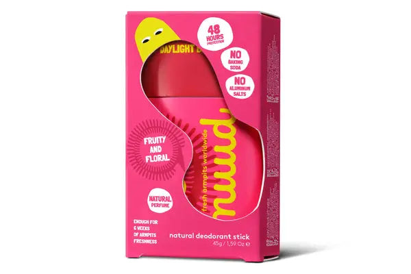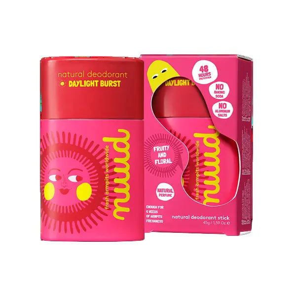 Der Nuud Daylight Burst Stick ist deine tägliche Portion Sonnenschein in Stick-Form! Mit einer frischen Mischung aus Melone, Litschi und Jasmin auf einer warmen Basis aus Kaschmir, Amber und Sandelholz duftet dieses Deo genauso traumhaft, wie es klingt.