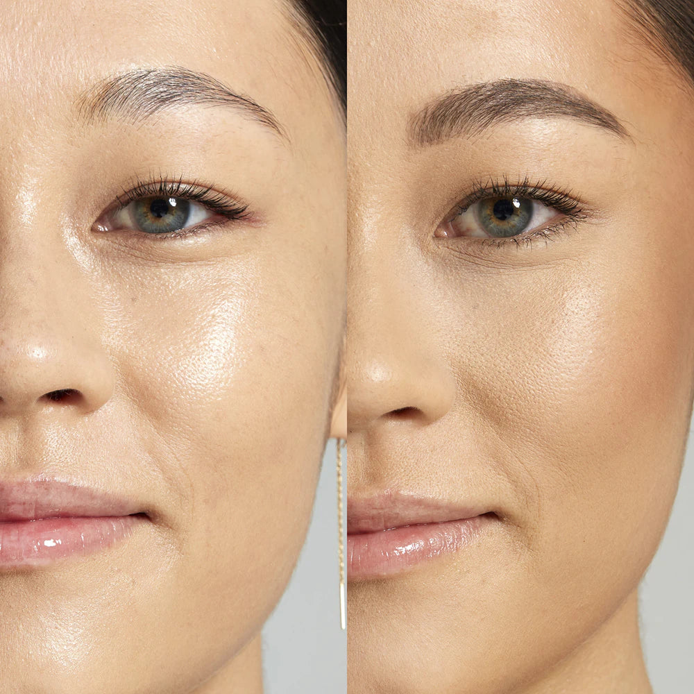 - Mit einem Highlighter-Pinsel in die inneren Augenwinkel, auf den Brauenbogen, den Amorbogen und die oberen Wangenknochen auftragen.
