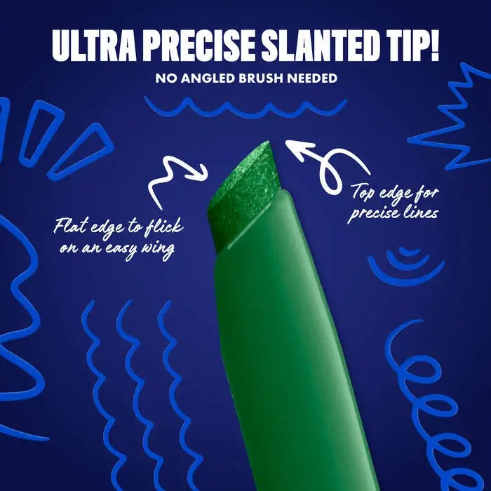 Die cremige Geltextur gleitet mühelos über die Haut, ohne zu ziehen oder zu verschmieren, und die abgeschrägte Präzisionsspitze macht es super einfach, feine Linien, Wings oder grafische Details zu zeichnen: ganz ohne Pinsel. Ob du dich für einen dezenten grünen Akzent oder einen auffälligen Eyeliner-Look entscheidest: Electric Emerald sorgt für Eindruck mit einem metallischen Finish, das deine Augen strahlen lässt!