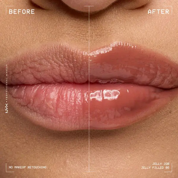 Der NYX Professional Makeup Jelly Job Lipgloss Jelly Filled verleiht deinen Lippen einen unwiderstehlichen Jelly Glanz mit einem saftigen glasartigen Finish das deinen Look sofort zum Strahlen bringt. Der innovative Spatelapplikator gleitet sanft über die Lippen und verteilt die leichte jellyweiche Textur gleichmäßig für einen saftigen Effekt und sichtbar vollere Lippen.