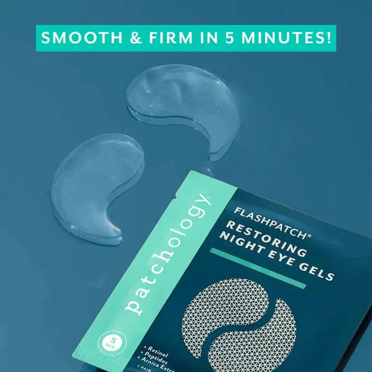 Die Patchology FlashPatch Restoring Night Eye Gels Single sind dein perfektes PM Reset Ritual. Diese Hydrogel Patches wirken, während du zur Ruhe kommst, und verleihen deinen müden Under Eyes in nur 5 Minuten ein glatteres, strafferes und frischeres Aussehen. Ideal als schneller Abendboost vor dem Schlafengehen.