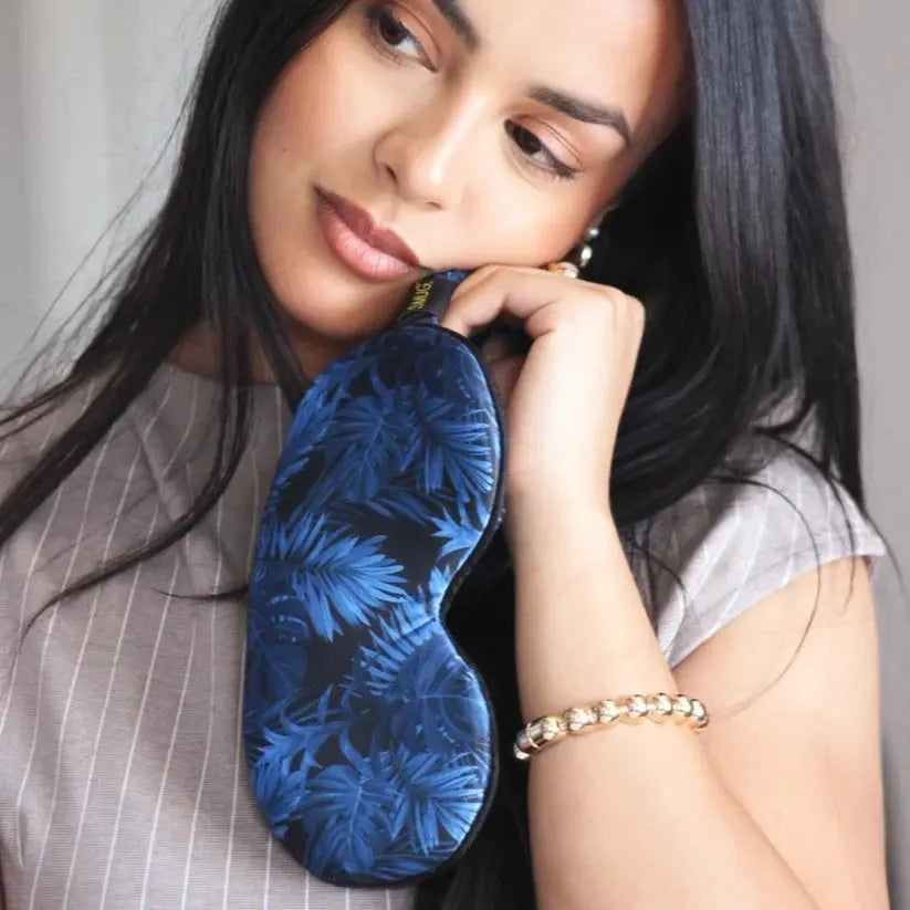 Die Smug Cloud Padded Satin Sleep Mask Navy Palm lässt dich von tropischen Orten träumen: ganz ohne dein Bett zu verlassen. Mit tiefem Navy-Hintergrund und dezentem Palmenprint ist diese Schlafmaske nicht nur ein Genuss für die Augen, sondern auch ein Must-have für deinen Schönheitsschlaf.