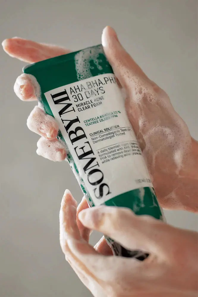Der Some By Mi AHA BHA PHA 30 Days Miracle Acne Clear Foam ist dein Retter in der Not, wenn du unter einer unruhigen, fettigen oder zu Akne neigenden Haut leidest. Dieser koreanische Favorit reinigt deine Haut intensiv, ohne sie auszutrocknen. Die sanfte, aber kraftvolle Schaumformel ist vollgepackt mit wirkungsvollen Inhaltsstoffen wie Salicylic Acid, Tea Tree Oil und 80% Centella Asiatica Extract. Say bye to breakouts und hello zu einem ruhigen, frischen Glow!