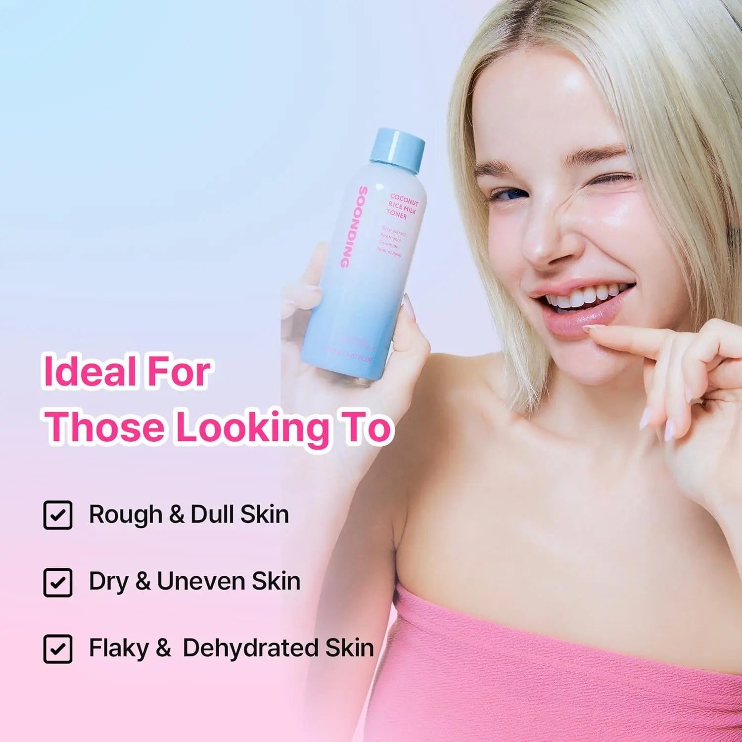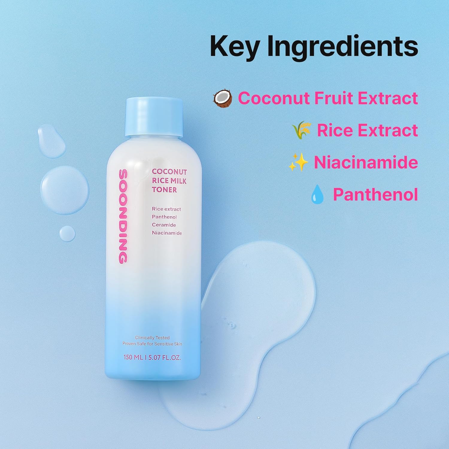 Der Soonding Hydrating Milky Toner ist der ultimative Durstlöscher für trockene oder fahle Haut. Mit Kokosnuss und koreanischem Reis spendet dieser milchige Toner deiner Haut einen intensiven Feuchtigkeitsboost, ohne sich schwer anzufühlen. Deine Haut fühlt sich frisch, weich und geschmeidig an, perfekt vorbereitet für den nächsten Schritt deiner Routine.