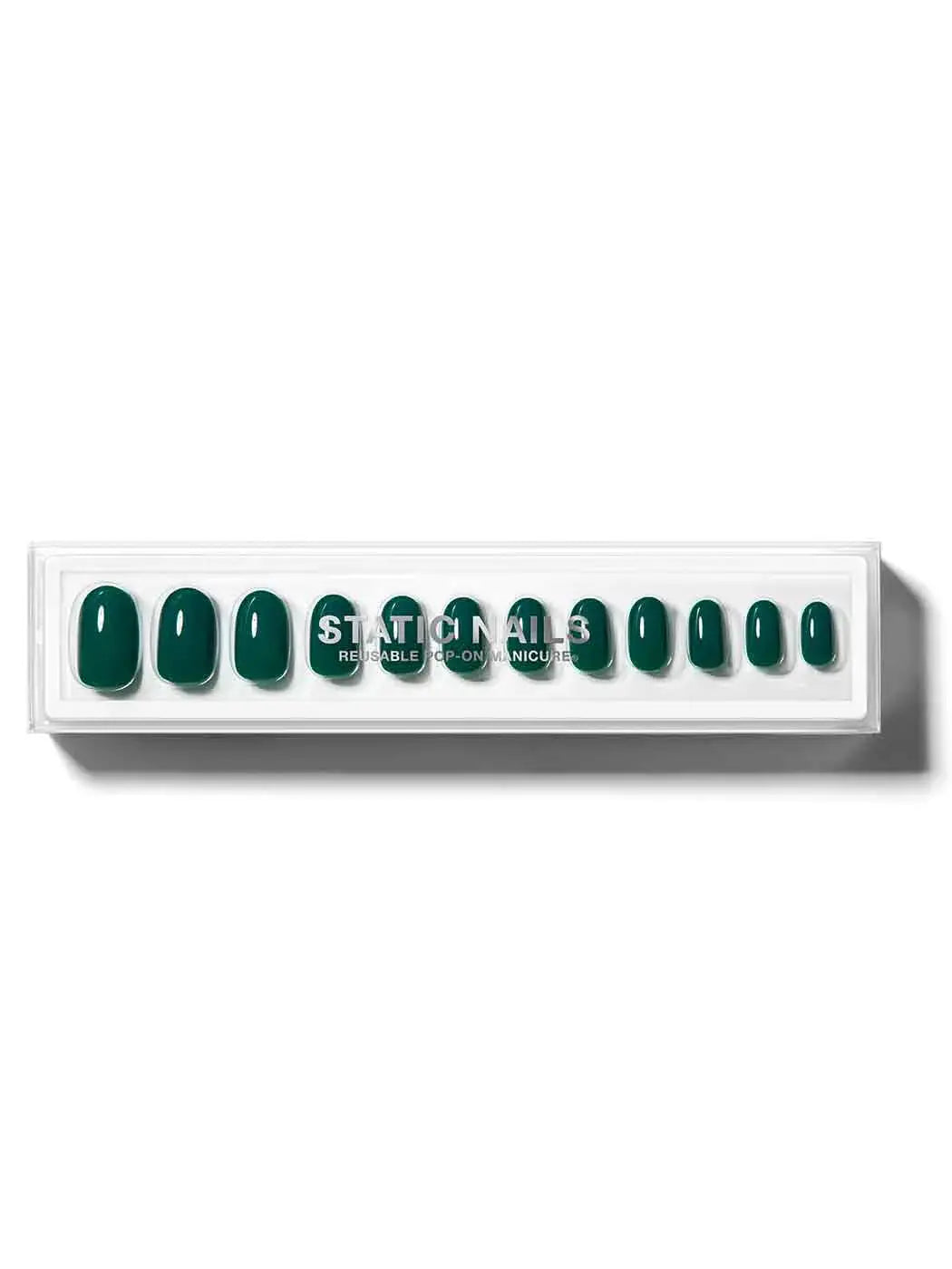 Die Static Nails Reusable Pop On Manicure Emerald Noir Round kombiniert Eleganz mit Innovation für eine next level Maniküre die du ganz einfach zu Hause anbringst. Diese like acrylic Pop On Nägel haben eine klassische runde Form und eine edle winterliche Farbe stilvoll und perfekt für jeden Anlass.