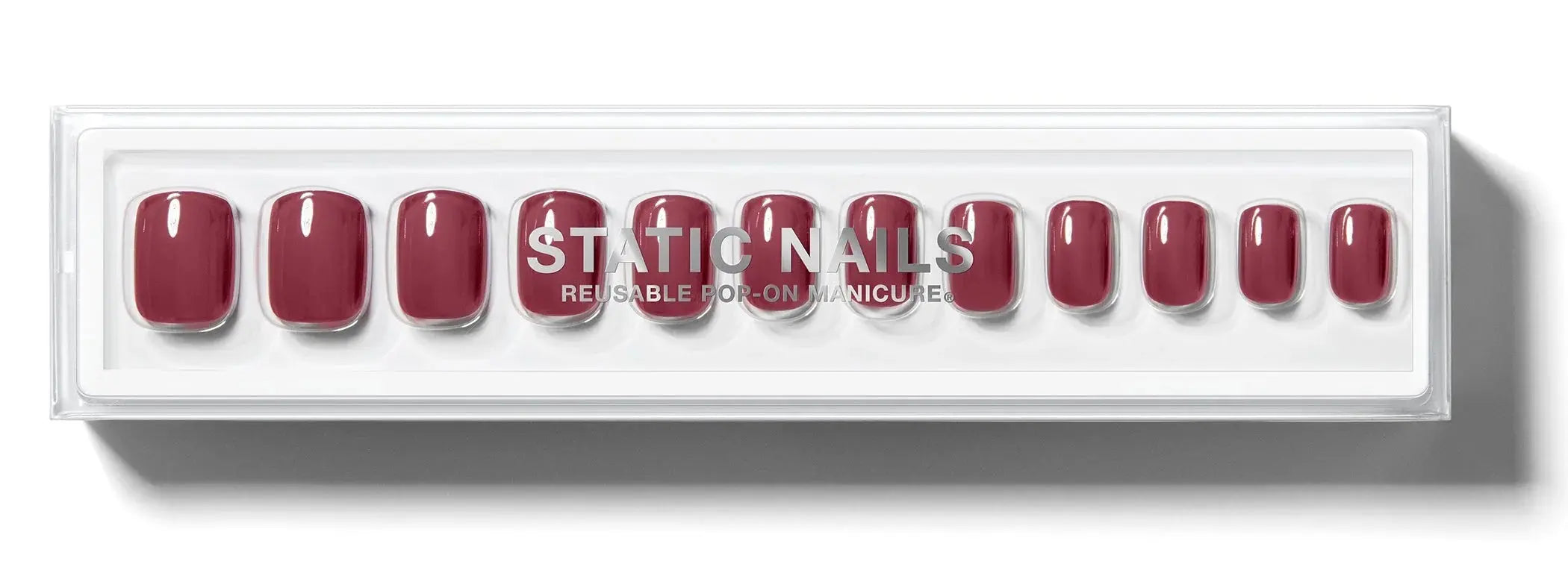 Die Static Nails Reusable Pop-On Manicure French Wine Square kombiniert Eleganz mit Innovation für eine next level Maniküre, die du einfach selbst zu Hause anbringst. Diese like acrylic Pop On Nägel haben eine klassische quadratische Form und eine schicke luxuriöse Winter Nagelfarbe, elegant und passend für jeden Anlass.