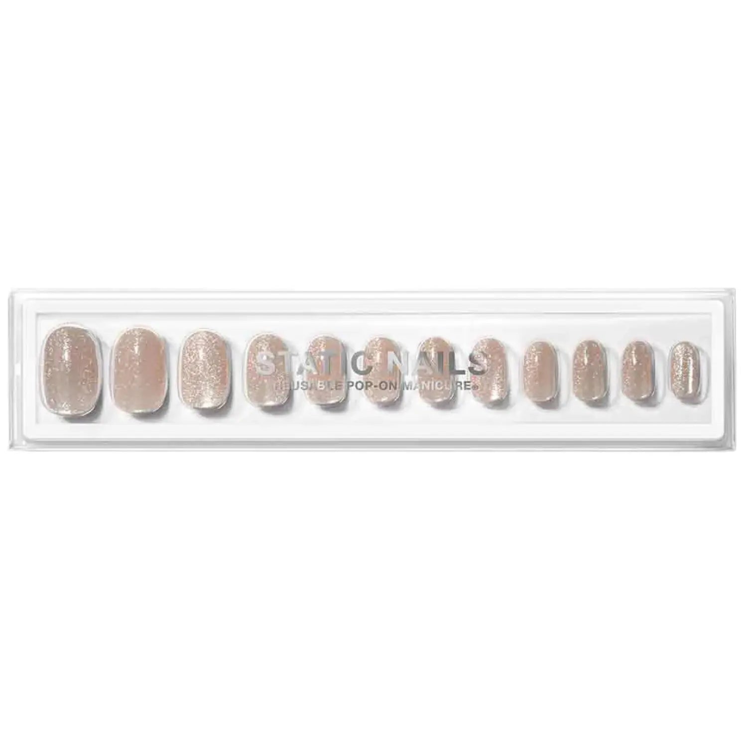 Die Static Nails Reusable Pop-On Manicure Pops For Champagne Velvet Round ist dein Go-to für einen luxuriösen, soften und stylischen Nagel-Look: ganz ohne Salonbesuch. Diese like-acrylic Pop-On Nägel in einem eleganten, samtigen Champagnerton mit runder Form bieten dir eine natürlich wirkende, nicht-schädigende Maniküre in nur wenigen Sekunden.