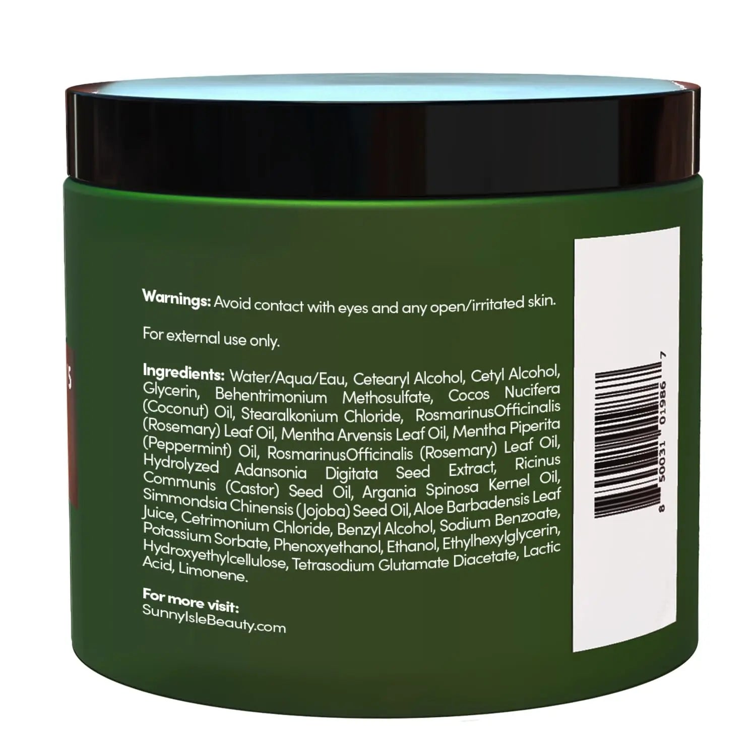 Water/Aqua/Eau, Cetearyl Alcohol, Cetyl Alcohol, Glycerin, Behentrimonium Methosulfate, Cocos Nucifera (Coconut) Oil, Stearalkonium Chloride, Rosmarinus Officinalis (Rosemary) Leaf Oil, Mentha Arvensis Leaf Oil, Mentha Piperita (Peppermint) Oil, Hydrolyzed Adansonia Digitata Seed Extract, Ricinus Communis (Castor) Seed Oil, Argania Spinosa Kernel Oil, Simmondsia Chinensis (Jojoba) Seed Oil, Aloe Barbadensis Leaf Juice, Cetrimonium Chloride, Benzyl Alcohol, Sodium Benzoate, Potassium Sorbate, Phenoxyethanol, Ethanol, Ethylhexylglycerin, Hydroxyethylcellulose, Tetrasodium Glutamate Diacetate, Lactic Acid, Limonene.