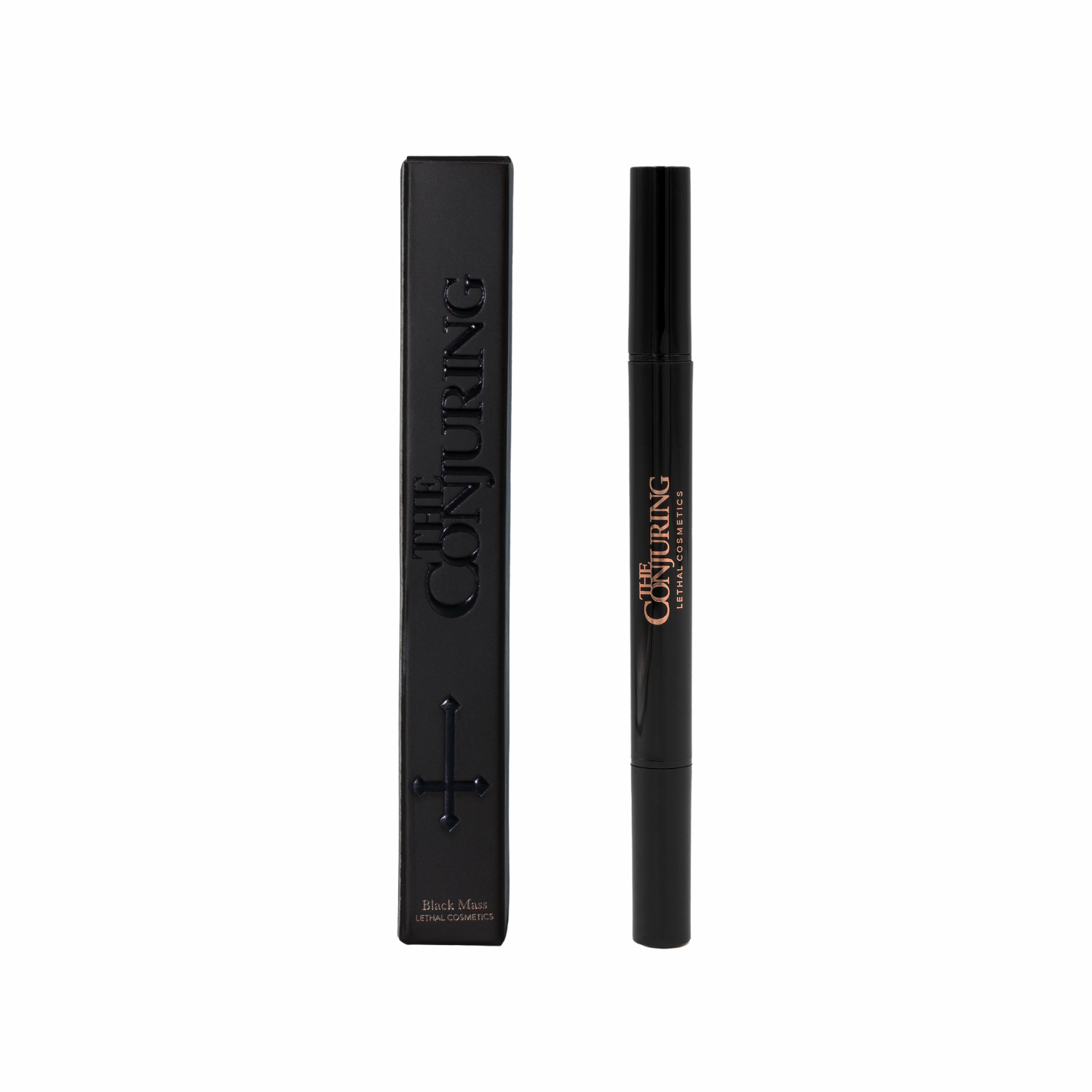 Der Lethal Cosmetics The Conjuring Liquid Liner Black Mass ist alles andere als ein Basic-Eyeliner er ist ein mysteriöses Make-up-Statement mit düsterem Twist. Dieser doppelseitige Eyeliner-Stift kombiniert eine superpräzise schwarze Pinselspitze mit einem Kreuz-Stempel am anderen Ende, sodass du mühelos zwischen präzise und kreativ wechseln kannst.
