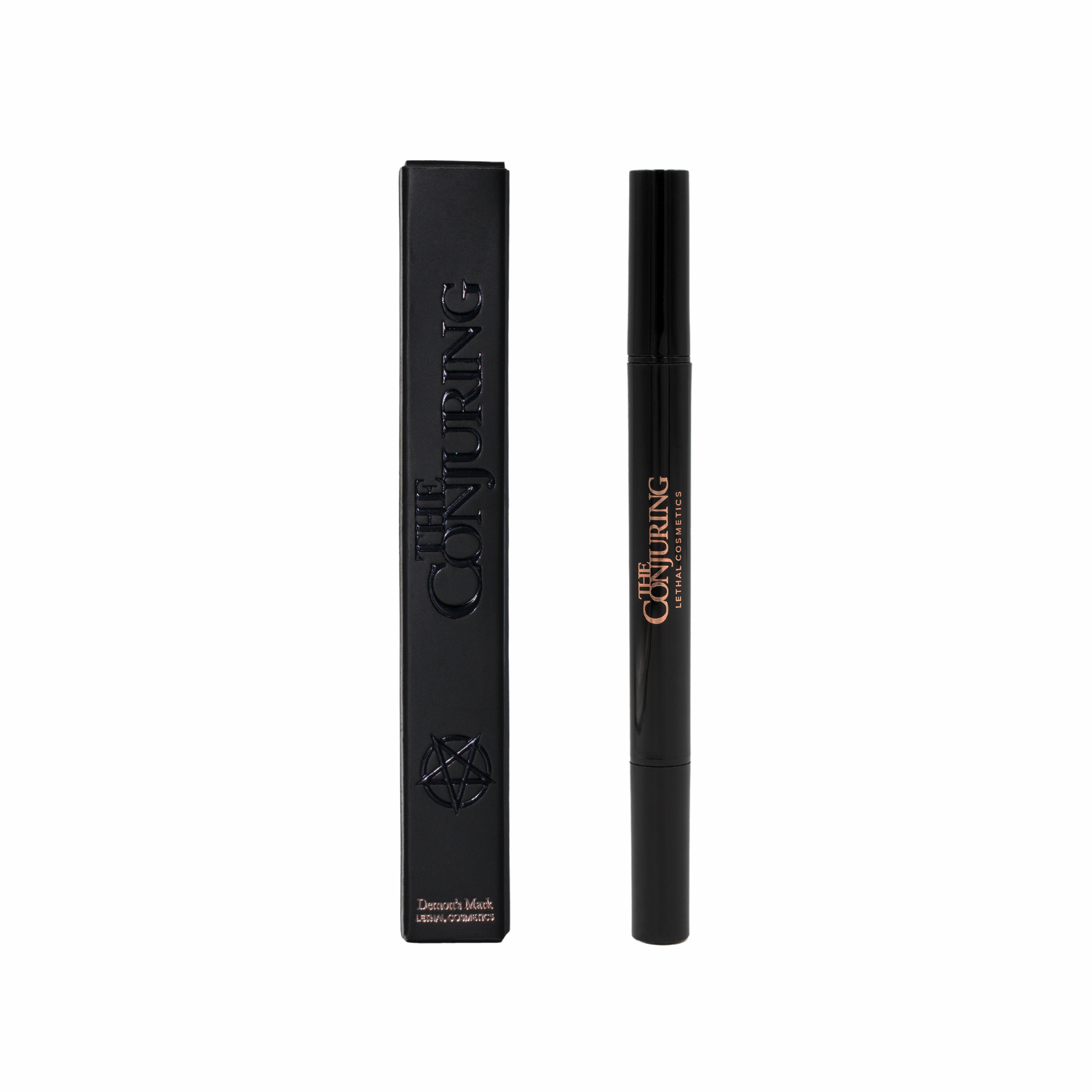 Der Lethal Cosmetics The Conjuring Liquid Liner Demon’s Mark ist kein gewöhnlicher Eyeliner er ist ein mystisches Statement für deinen Augen-Look. Dieser doppelseitige Eyeliner-Stift in einem tiefen, pflaumenfarbenen Ton kombiniert eine ultra-präzise Pinselspitze mit einem kraftvollen Pentagramm-Stempel am anderen Ende. Perfekt für alle, die sich trauen, mit Dark Glam und magischen Details zu spielen.