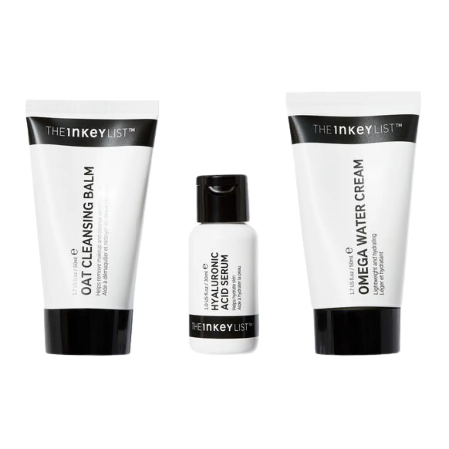 Der Oat Cleansing Balm reinigt deine Haut intensiv und dennoch besonders sanft, dank Haferkernöl, das gleichzeitig beruhigt und pflegt. Danach spendet das Hyaluronic Acid Serum einen starken Feuchtigkeitsschub, der tief in die Haut eindringt: hello pralle Haut! Abschließend sorgt die Omega Water Cream, eine ölfreie Feuchtigkeitspflege, für Hydratation ohne Glanz. Gemeinsam bilden sie die perfekte Basispflege für eine hydratisierte, frische und ausgeglichene Haut.