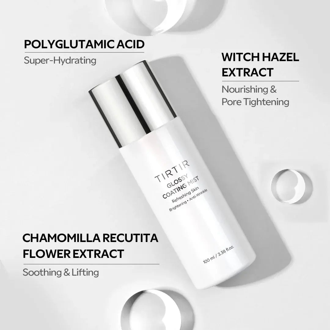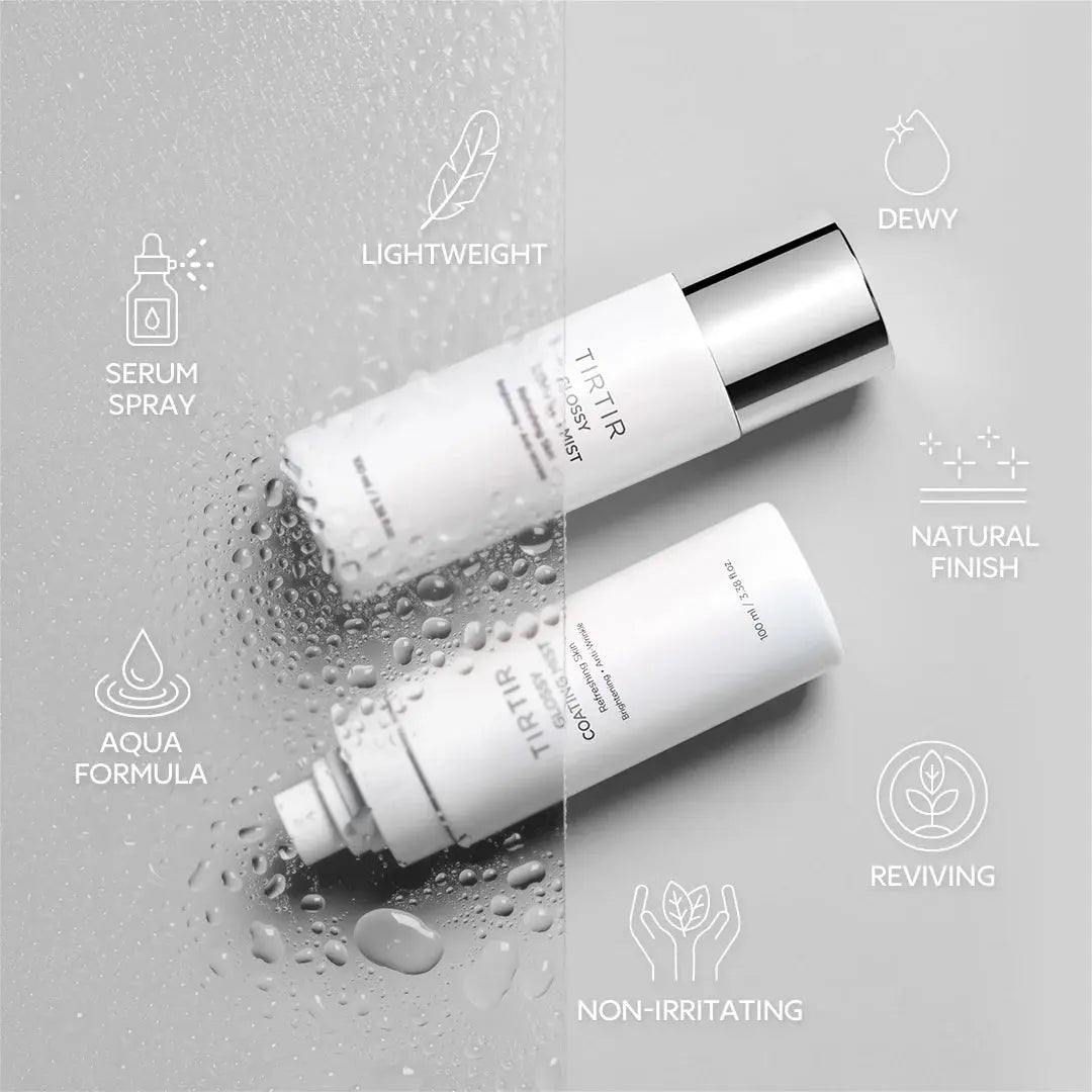 Der TIRTIR Glossy Coating Mist ist deine neue Geheimwaffe für eine strahlende, mit Feuchtigkeit versorgte Haut: egal ob als letzter Schritt deiner Hautpflege oder für ein leuchtendes Finish über deinem Make-up. Dieser multifunktionale Mist kann alles: hydratisieren, beruhigen, Poren verfeinern und dein Make-up länger haltbar machen. Denk an: Glass Skin mit nur einem Sprühstoß.