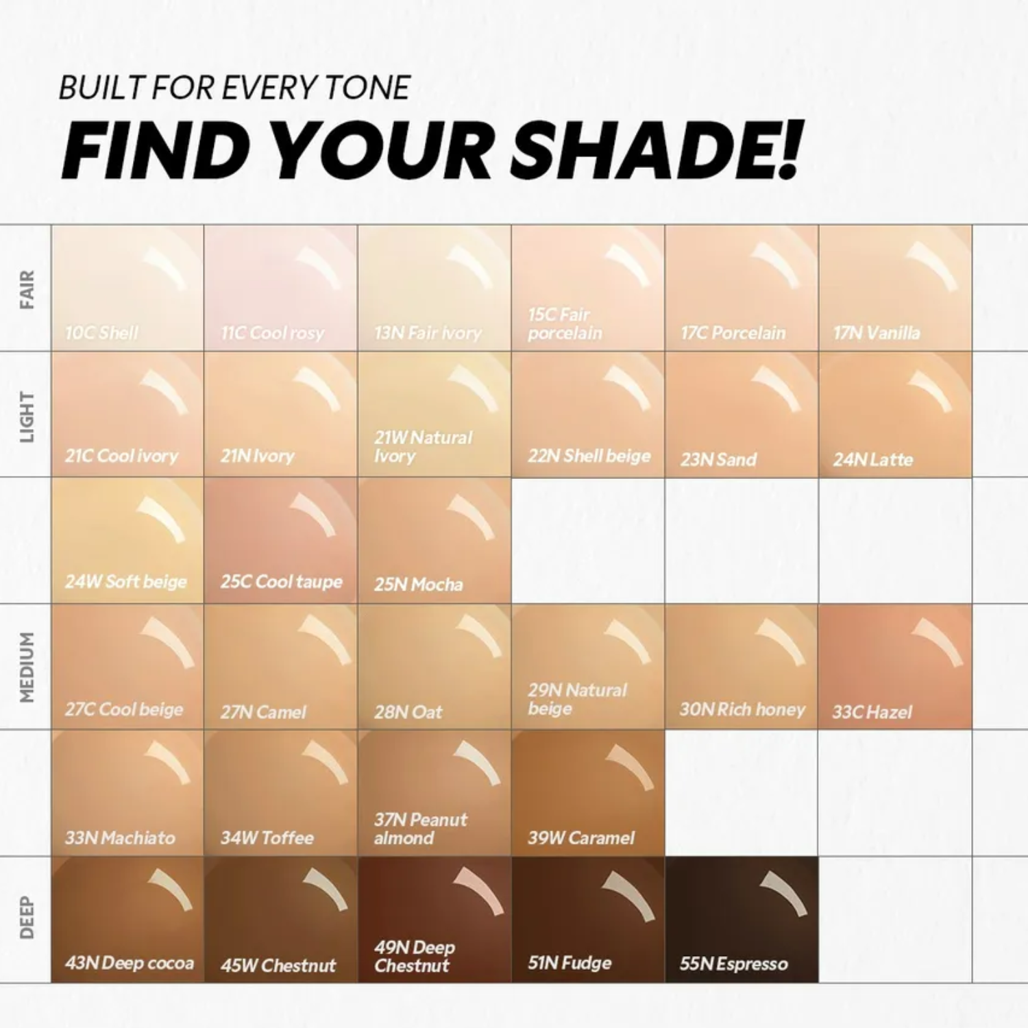 Water, Cyclopentasiloxane, Titanium Dioxide (Ci 77891), Trimethylsiloxysilicate, Propanediol, Dimethicone, Diphenylsiloxy Phenyl Trimethicone, Methyl Trimethicone, Niacinamide, Peg-10 Dimethicone, Peg/ppg-18/18 Dimethicone, 1,2-hexanediol, Polypropylsilsesquioxane, Magnesium Sulfate, Boron Nitride, Polyglyceryl-3 Polydimethylsiloxyethyl Dimethicone, C12-15 Alkyl Benzoate, Disteardimonium Hectorite, Iron Oxides (Ci 77492), Aluminum Hydroxide, Polyhydroxystearic Acid, Stearic Acid, Isododecane, Octyldodecanol, Triethoxycaprylylsilane, Alumina, Potassium Sorbate, Propylene Carbonate, Iron Oxides (Ci 77491), Fragrance (Parfum), Polyglyceryl-4 Isostearate, Adenosine, Trisodium Ethylenediamine Disuccinate, Neopentyl Glycol Diethylhexanoate, Iron Oxides (Ci 77499), Isopropyl Titanium Triisostearate, Polymethyl Methacrylate, Haematococcus Pluvialis Oil, Butylene Glycol, Glycerin, Dipropylene Glycol, Sodium Palmitoyl Proline, Cetearyl Dimethicone/vinyl Dimethicone Crosspolymer, Hibiscus Sabdariffa Flower Extract, Astaxanthin, Rosa Rugosa Flower Extract, Pancratium Maritimum Extract, Nymphaea Alba Flower Extract, Propolis Extract.