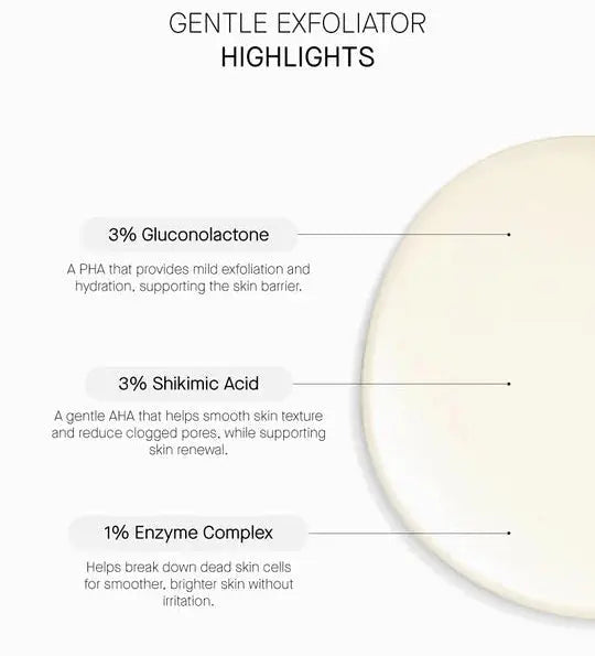 Mit 3 % Gluconolacton (PHA) und 3 % Shikimisäure sorgt diese Formel für ein sanftes Peeling, spendet Feuchtigkeit, stärkt die Hautbarriere und hilft, vorzeitiger Hautalterung vorzubeugen. Der 1 % Enzymkomplex entfernt abgestorbene Hautzellen auf milde Weise – ganz ohne Rubbeln oder Reizungen. Ideal für alle Hauttypen, auch empfindliche! Nach der Anwendung fühlt sich die Haut sofort glatter, frischer und optimal vorbereitet auf die nächsten Pflegeschritte an.