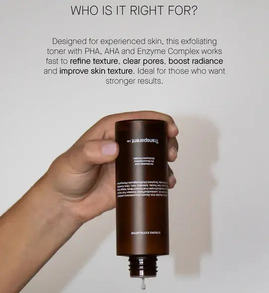 Der Transparent Lab Strong Exfoliator ist der Power-Move für deine Skincare-Routine! Dieses intensive Peeling ist perfekt für alle, die bereits an Säuren gewöhnt sind und den nächsten Glow-Level erreichen möchten. Mit einer starken Kombination aus AHA, PHA und Enzymen wirkt dieses Treatment in mehreren Hautschichten gleichzeitig, für sichtbar glattere, ebenmäßigere und strahlendere Haut.