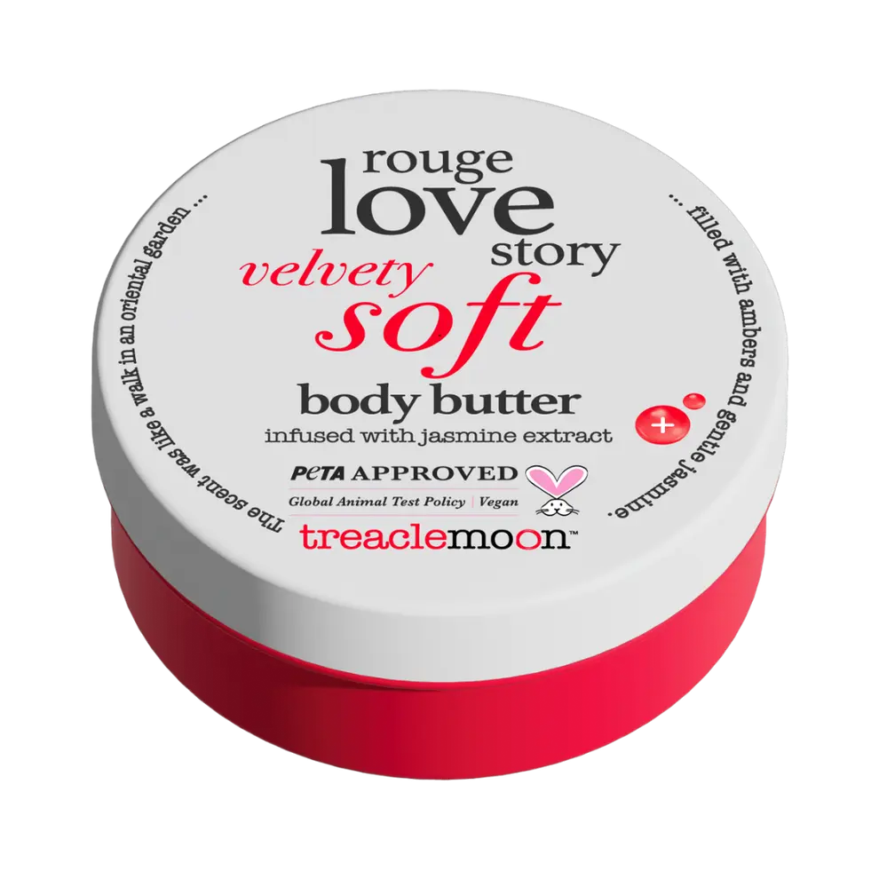 Die Treaclemoon Rouge Flower Story Body Butter ist eine intensiv pflegende Körperbutter mit einem herrlich blumigen Duft, die die Haut weich, geschmeidig und strahlend macht. Diese reichhaltige Formel ist für alle Hauttypen geeignet und fühlt sich wunderbar luxuriös auf der Haut an. Die Kombination aus Macadamiaöl und Pro Vitamin B5 nährt tiefenwirksam, glättet raue Stellen und sorgt für einen gesunden, natürlichen Glow.