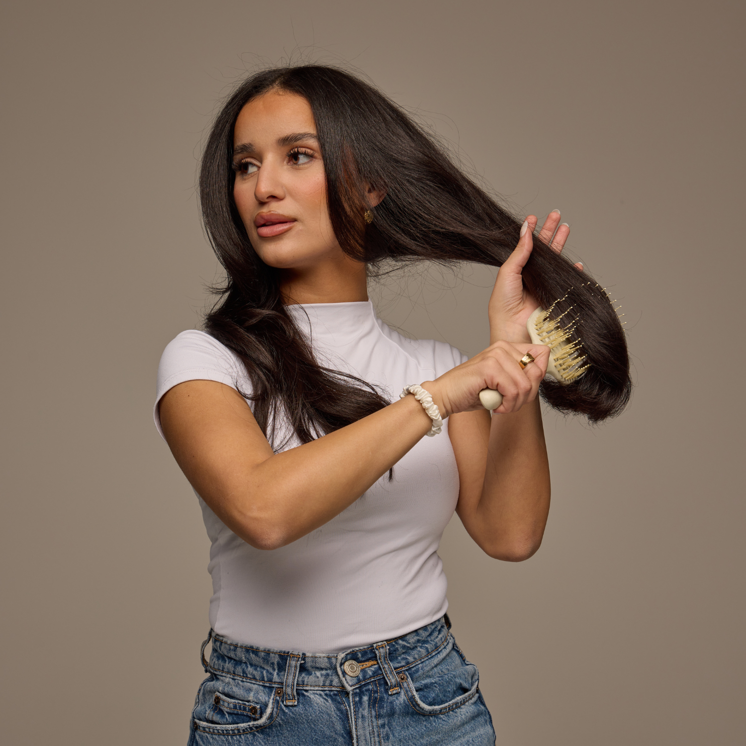 Dank des cleveren, flexiblen Designs ist diese Bürste besonders sanft zur Kopfhaut und auch ideal für Kinder. Egal ob feines, dickes, glattes oder lockiges Haar, die Daily Detangle Brush macht das Bürsten einfacher, schneller und viel angenehmer. Verwende sie zusammen mit einem Leave-in oder Serum für den perfekten, glänzenden Abschluss!