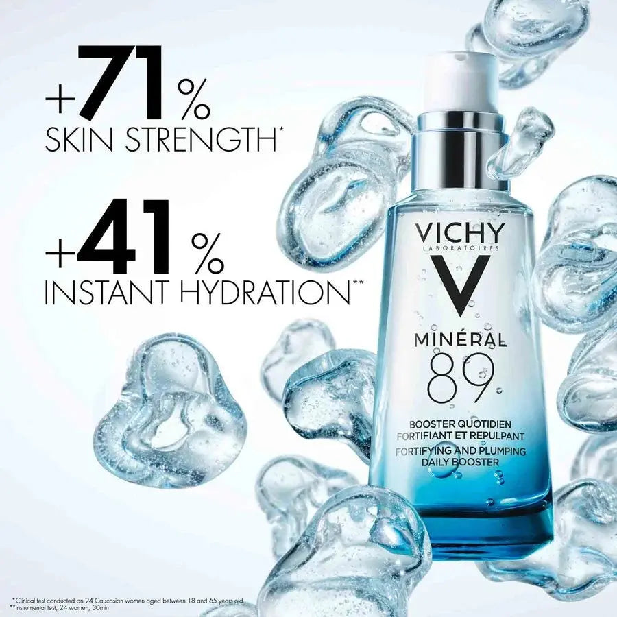 Das Vichy Mineral 89 Daily Booster Serum ist ein feuchtigkeitsspendender und stärkender Booster der die Hautbarriere aufbaut und schützt. Die innovative Formel enthält 89 Prozent vulkanisches Vichy Wasser und reines Hyaluron wodurch die Haut täglich intensiv gepflegt wird und sofort frischer und praller wirkt.