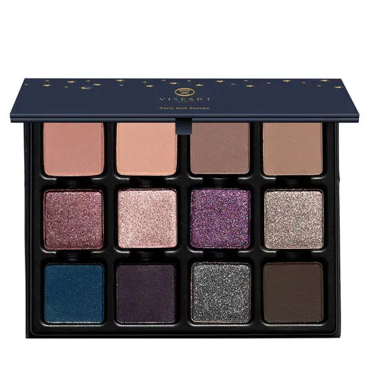 Das Paris Nuit Étendu Eyeshadow Palette ist dein ultimatives Ticket für einen verführerischen, Pariser Smokey-Eye-Look. Mit 12 wunderschönen Nuancen, von Obsidian-Schwarz und tiefem Blackberry bis hin zu metallischem Pewter und Tintenblau, kreierst du mühelos alles von zartem Schimmer bis zu einem intensiven Nachtlook. Die Mischung aus moonlit Shimmers und midnight Mattes bietet dir endlose Möglichkeiten zum Shapen, Blenden und Strahlen, sobald die Sonne untergeht.