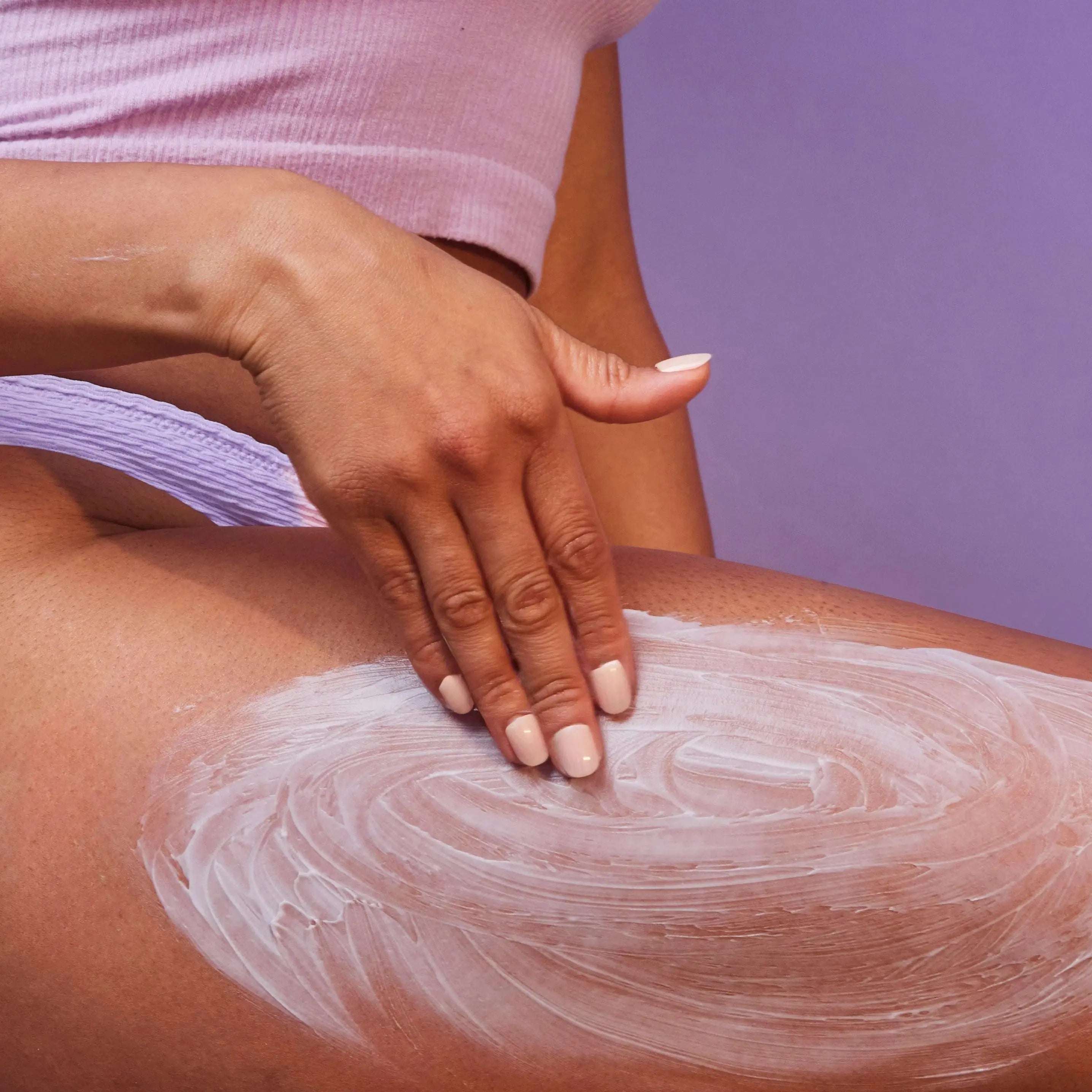 - Massiere sie sanft ein, bis die Body Butter vollständig eingezogen ist.