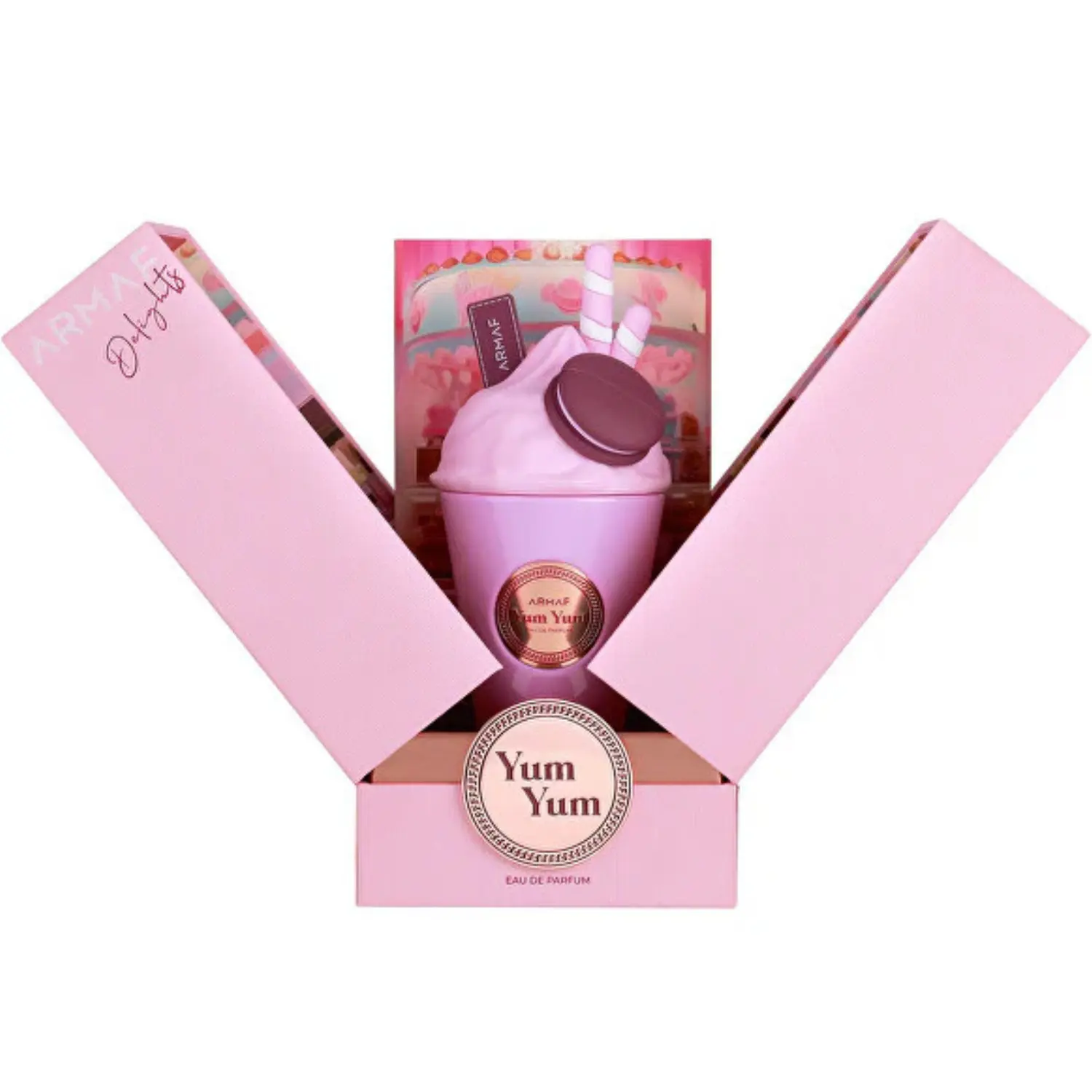Armaf Delights Yum Yum Eau De Parfum ist ein unwiderstehlich süßer und fröhlicher Duft, der sofort an cremige Milchshakes auf einer sonnigen Terrasse erinnert. Dieses Parfum aus der Delights-Kollektion ist verspielt, feminin und süchtig machend: perfekt für alle, die fruchtige Düfte mit einer sanften, gourmandigen Note lieben.